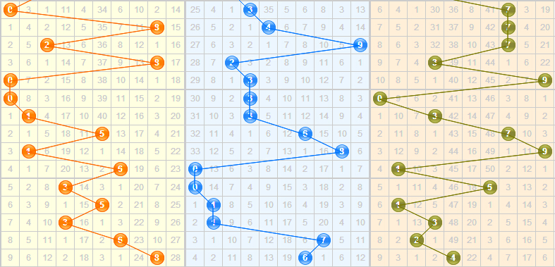 上期开出了跨度4,从走势图来看,近期跨度大部分集中在4-6区间,预计本期也差不多;结合走势,本期关注跨度2、3、5、6