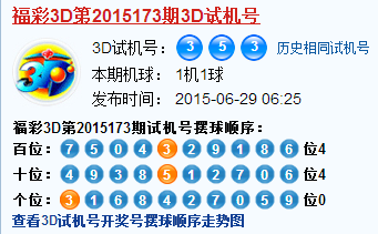 福彩3d第2015173期3d试机号号码是353