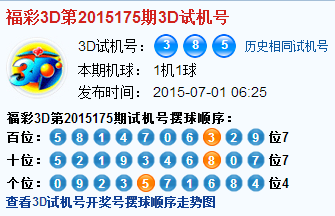 福彩3d第2015175期3d试机号号码是385
