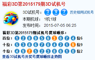 福彩3d第2015179期3d试机号号码是397