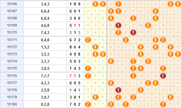 跨度分析:上期跨度为7,近十五期跨度出号较集中,其中跨度4、5、6都分别开出过三期,本期可关注其他开出过的跨度,有重复开出的可能,本期跨度推荐:2,3,5,7.