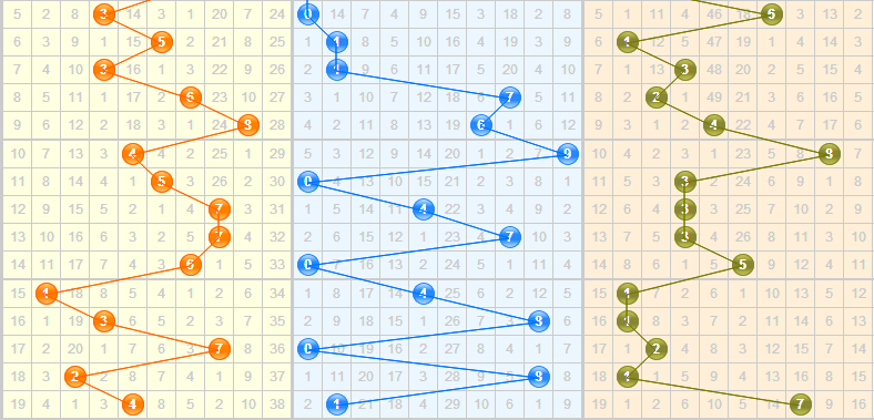 和值分析:上期开奖号和值为12,开在第二区域内,近四期和值浮动变小,本期看好和值继续小幅度左右浮动,开出在第一或第二区域内,本期和值综合推荐7 8 9 10 13 14。