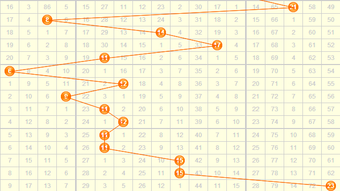 上期开出的和值是23,近期和值总体来说集中开在了第二区域,而且集中重复开出在那几个数值上,所以本期可以关注第二区域常开的和值,结合走势,本期推荐关注和值:11 12 14 15 16 17 18