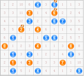 和值:7 8 9 10 11 12 15 16 17 19