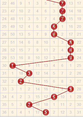 3D上期开奖结果为:416,和值11,开在了第二区域,观察近15期的走势,近15期和值主要的还是开在了第二区域,而且和值重复开出的比较多,和值11、12和15都开出了3期,本期预计和值会向右走,重点关注常开和值12和15。综合以上分析,本期和值推荐区间12-19。