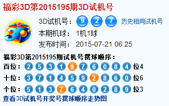 福彩3d第2015195期3d试机号号码是927