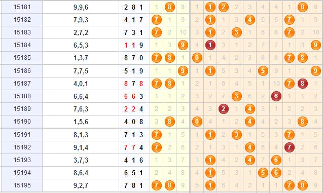 和值分析:和值上期开出了16,今期的和值都开在了第二区域内,而且开得还是比较集中得,本期的话继续关注和值16附近的和值数,本期和值综合推荐14 15 16 17 18 19。