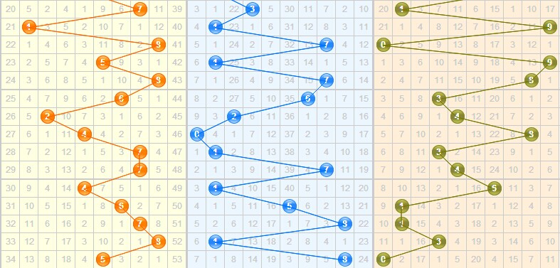 从近15期的和尾值走势来看,开出的数字跨度在逐渐缩小,上上期开出2,上期开出的是3,跨度为1,本期可关注大跨度开出;5出现的概率较高,且已经9期未开出,本期重点关注;4和7已经连续20多期未开出,9号球也已经17期未开出,本期依旧不看好;