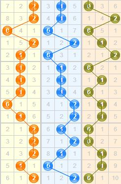百位:百位上出现2路的可能性最大,15期中出现了7期,近5期中出现了4期,本期继续重点关注百位上开出2路;