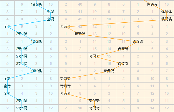 奇偶分析:最近的五期,奇数开出数量非常多,第15198期-第15200期,三期全奇,第15201期和第15202期为2奇1偶,本期依然可以把重点放在奇数的开出上。看奇偶趋势图,奇奇偶当前遗漏值为10,已有10期没出现过,本期出现的可能性非常大;再看偶奇奇,第15194期到第15196期,偶奇奇、奇偶奇、偶奇奇形成对称,这俩类型有密切关系,所以本期出现偶奇奇的概率也很大。