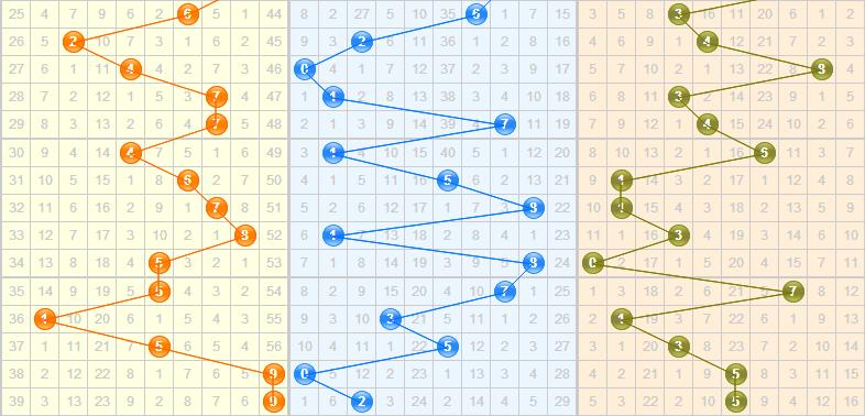 百位:上期百位开出的号码是9号球,9号球是在连续56期未开出之后连续开出2期,本期不看好百位上继续开出重码9;利用杀码公式:上期开奖号的百位乘以3加3后取个位杀下期百位,上期百位也是9,9*3+3=30,取个位为0,这一方法在最近几期中命中率较高,所以确定0号球是本期百位的杀码,本期不看好;再利用上期和尾值-3杀本期百位的方法,确定3号球也是百位杀码,本期同样不看好;7号球已经连续7期未开出,本期开出符合它的出现周期,本期重点看好7号球;百位综合推荐:24567