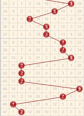 上期开出的跨度值是2,从走势图上看,2在近期经常重复出现,所以本期继续看好跨度值开出2;根据走势图同时发现,前几期开出的跨度值振幅较大,前一期开出的振幅开始缩小,本期继续看好振幅缩小,可以重点关注2附近的数字的开出;综合推荐:1 2 4 6.