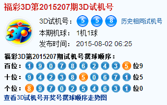 本期3d试机号胆码计算器推荐号码为339,推荐的看好全部都是奇数号球,3号球近期有走暖的趋势,本期看好3好球的开出,3d试机号后分析专家北斗星第207期综合推荐:034568。