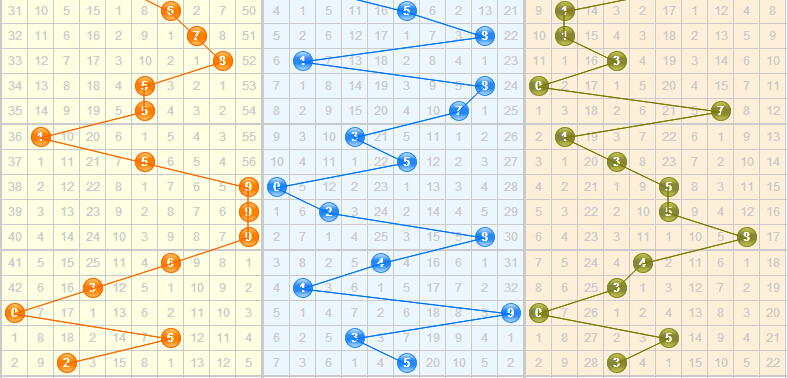 和值最近波动非常大,近六期中仅有三期停留在第二区域内,最近和值14比较热门,本期可以多关注14,与上一期的10和上上期的14对称,也可关注10左侧的数字,6的8的已遗漏周期为0.9,接近1,也就是说很有可能会出现。和值推荐:8 12 14 15。