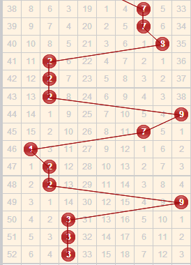 上期开奖号码为547,和值为16,根据近期的和值走势图,上期和值大幅度往右偏移,本期可能会大幅度往右偏移,要注意第三区域的和值开出,近期和值16也有往小数值开,出现个一次,本期看好和值区间12-22推荐和值:12 13 14 1819 20;