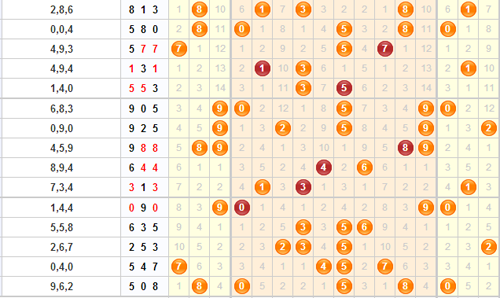 跨度分析:上期开出了508,跨度为8 。根据跨度走势图,得出一下结论,跨度在经过一次大的变动之后,大多数情况下,下期的跨度都会出现在这两个跨度之间。上期跨度为8,上上期跨度为3,所以本期推荐跨度为3到8之间的数字。综合推荐:34567