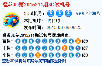 本期3d试机号胆码计算器推荐号码为821,近期试机号胆码计算器连续命中,本期看好128开出1-2个号,3d试机号后分析专家北斗星第211期综合推荐:134678。