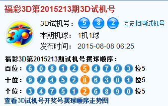 福彩3d第2015213期3d试机号号码是582