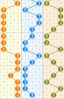 上期开奖号码为241,和值为7,和值7连续开出两期,根据走势图,预计本期可能不会再次开出,和值会往第二区间偏移,在总体偏左的是趋势下,往第三区间开出的可能性不大;比较看好11-13之间的和值,综合推荐和值:1112 13 14 15 16