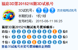 福彩3d第2015216期3d试机号号码是138
