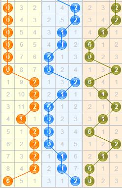 个位:上期个位开出0路,连续开出了2期,从走势图上看0路近期内没有出现过连续开出3期,所以本期可关注1路和2路的开出;
