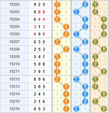 上期开奖号码为053,小大小,百位上近十五期大数开出的热度比较高,近几期小数独占了连续4期,本期有可能交替为大数;十位上,大数每开出一期就会交替小数,没有重复开出,建议本期看好小数;个位上,近期小数每开出一期交替大数,本期可能会交替大数;本期舍利子推荐大小:大小大、小小大