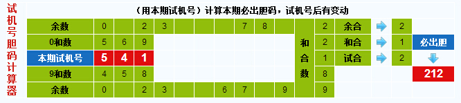 3D试机号胆码计算器:今晚必出胆码212