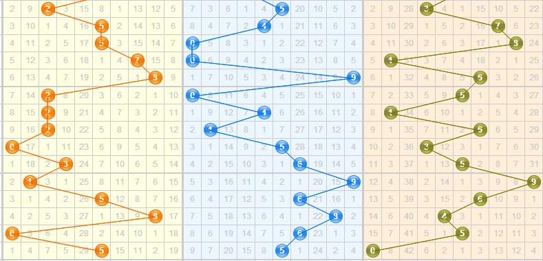 百位:上期百位开出5号球,是在相隔2期之后继续开出的,本期要适当关注继续开出重码;4号球在百位上已经连续29期未开出,属于百位上的绝对冷号,本期继续不看好4号球的开出;根据百位杀码公式:上期开奖号码的百位*3+3后取个位杀本期百位,5*3+3=18,取个位8,所以确定本期8号球是百位上的杀码;上期开奖号的百位*7+7后取个位杀下期百位,5*7+7=42,取个位2,所以确定本期2号球也是百位上的杀码;上期开奖号码的和值尾-3绝杀本期百位,所以确定本期7号球也是百位上的杀码;上述公式经过前几期的运用,准确率较高,本期继续使用;百位综合推荐:013569