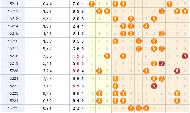 福彩3d第15225期开出了234,开出了3小,1奇2偶,和值是9,和尾是9,跨度是2,,201路号码,开出了组六。