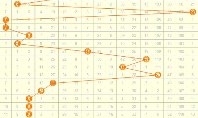 和值分析:在和值上,连续开出三期的和值9,近期小号持续走红,和值明显不是很大,继去年还是看好小号球的开出,所以本期的和值推荐在第一区域与第二区域交界段。和值推荐:8 10 13 14