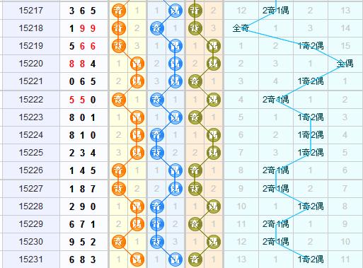 个位:上期个位开出奇数,从走势图上看,近期个位上奇偶数总是交替开出,所以本期推荐同时关注个位上开出奇数和偶数;