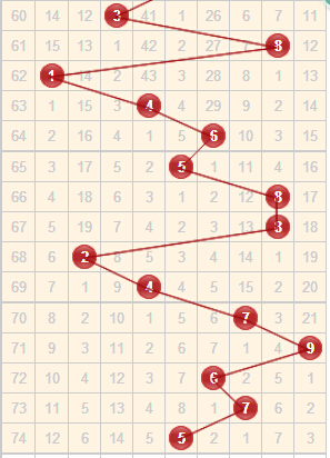 和值分析:分析近期的和值走势图,在近期和值跳动幅度不是很大,都在第二区域中,近期大号持续走红,和值偏向右移动,近期大小走势基本都是两大一小的配制,从大小走势上看本期和值还是在第二区域靠右边。和值推荐:10 13 15 16