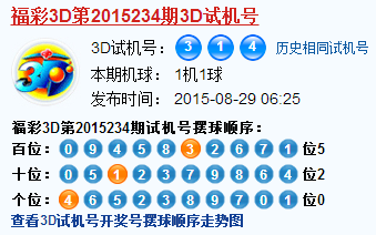 福彩3d第2015234期3d试机号号码是314