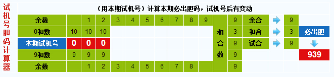 3D试机号胆码计算器:今晚必出胆码939
