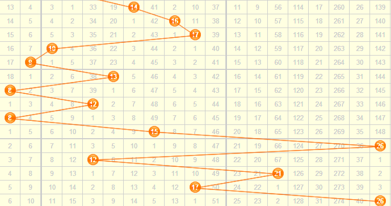 和值分析:近期和值走势动荡比较大,最近大号比较走红,连连的大号使得和值在第二区域与第三区域跳动。分析和值走势图,和值20-27出现很少遗漏值基本都是过百期的,虽然前面连续出现三期大和值开出,本期还是不怎么推崇第三区域。本期和值看好第二区域,和值推荐:10-19