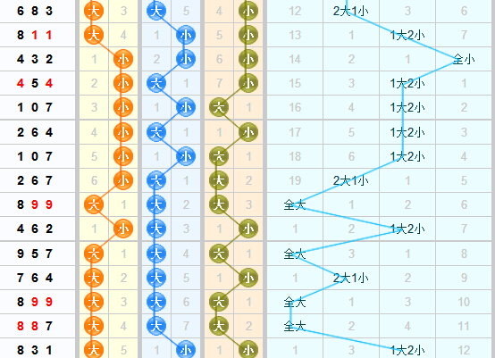 十位:分析十位大小走势图前面开出一个小号,之前连续7期的大号,本期推荐大小都关注。