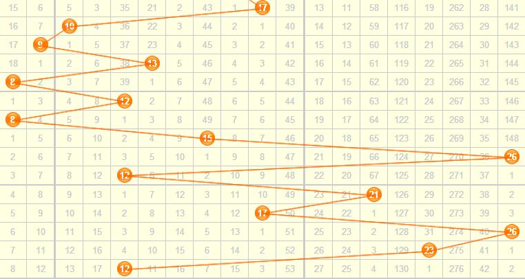 从近期的和值走势图分析,近期和值走势跳动幅度较大,前段时间开出号码大号居多,和值普遍较大,综合分析近期开奖走势,上期开出小号居多,有小号回暖的趋势,本期看好小号的持续开出,和值看好第二区域的开出。本期和值推荐8-18