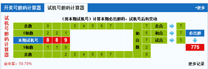3D试机号胆码计算器:今晚必出胆码775