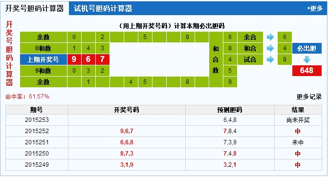 胆码计算器分析: