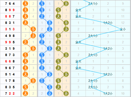 十位:十位上前面连续开出两期的小号,分析走势,本期看好十位小号的持续开出。