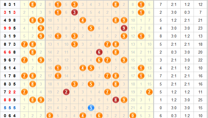 0号前面遗漏21期,上期遗漏回补,2号的情况也差不多,前面是冷号,在近期开出,冷极而热,本期要关注他们的开出。3号和7号在斜连号上,分析近期的斜连号走势本期看好斜连号的开出。5号在近期的开出算比较好,前面开出周期相对都是比较短,都是隔一到两期就开出,本钱看它的开出。8号在近期的走势也是比较热门,前面开出周期也相对很小,重复开出很多,当前有两期没开车,本期看好它的开出。本期综合推荐号码:023578