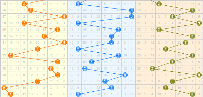 百位:近期百位上的跨度走势(2-3-4-4-7-1-1-3-5-1),本期留意跨幅大跨隔期开出,注意小跨连续开出,主看小跨2、3防大跨5。上期开出1路号码1,近十期012路比值3:3:4,1路相隔3期开出,目前2路较为强势,根据遗漏走势来看,本期首选2路码,防0路出号。关注2、5、3,