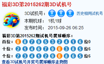 本期3d试机号胆码计算器推荐号码为939,本期试机号胆码计算器推荐两个9,本期看好大号球开出9号球,3号球上期开出1期,结合走势图,近6期都没有开出连号球,本期3号球继续开出的可能比较大,3d试机号后分析专家北斗星第262期综合推荐:034569。