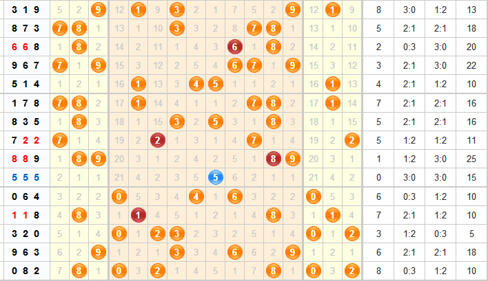 分析近期的和值走势,近期的和值跳动幅度比较大,小号的持续走红,使得和值相对还是下降比较多。总体上分析近期的和值基本在第二区域内,本期和值看好第二区域内的开出,本期和值推荐:8-18。