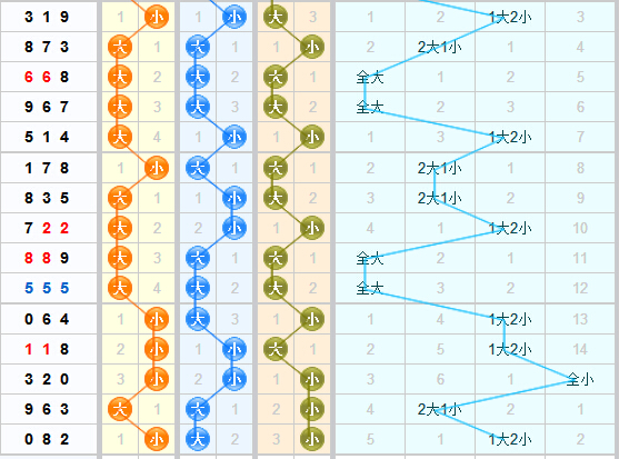 个位:个位上连续开出小号,分析近期个位上的走势,看好小号的持续开出。