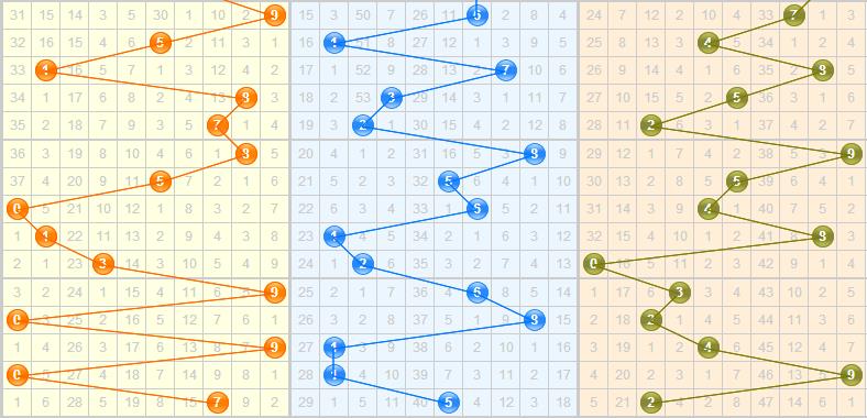 三、个位:开出2号小码,分析近期出号走势,小号走势向出码,0路号走向为热态,本期重点防小号出码,关注号[423]