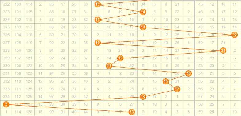和值分析:从和值走势图分析,近期和值基本都落在第二区间,上期开出和值13,在第二区间靠左边的位置,已连续两期开出的和值遗漏周期都较大,故本期可适当关注一下第二区间内和值遗漏周期较大的数;另外近期和值的奇偶情况是一期奇数两期偶数交替开,上期是奇数,本期更看好偶数和值的开出。