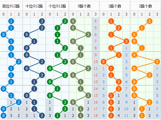 百位:上期开出0路号码9,近十期012路比值4:4:2,0路连续2期开出,目前01路较为强势,根据遗漏走势来看,本期首选2路码,防1路出号。关注2、5、4,杀码0、9