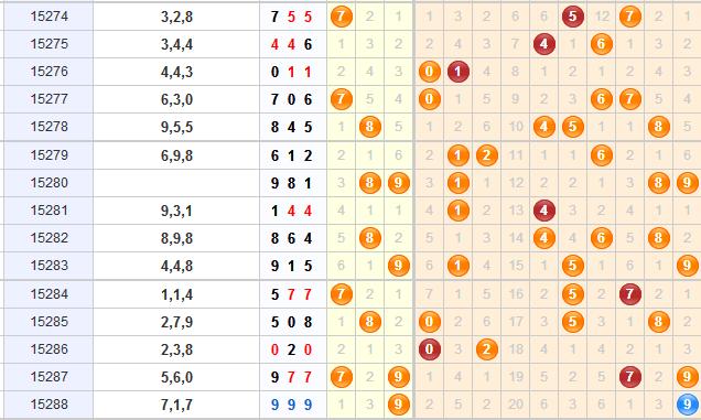 上期开出了豹子号,所以跨度是0;从走势图上看,近几期开出的跨度值都以小数为主,本期推荐关注开出大跨度值;综合推荐:3 5 7 8