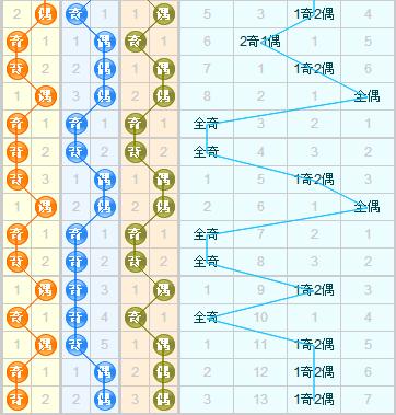 百位:从奇偶走势图上来看,百位上近期的奇偶走势是“奇—偶—奇—偶—奇—奇”,奇数已经连开两期了,从近期走势看,下期开偶数的可能稍大一些。